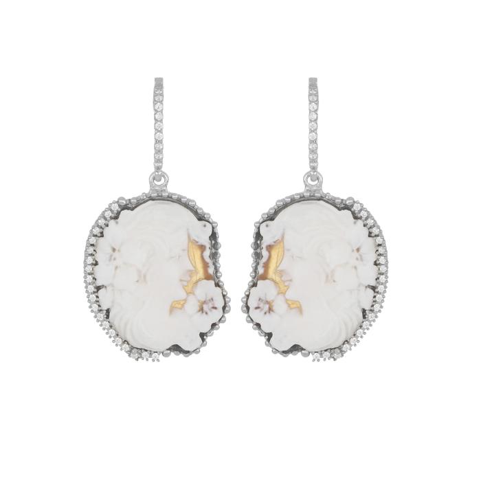 Gli orecchini Helen sono realizzati in argento 925 °/°° con cammeo e zirconi.