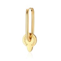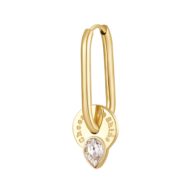 Orecchino singolo rettangolare in acciaio 316L, finitura color oro e pendente con incisione e cristallo crystal.
