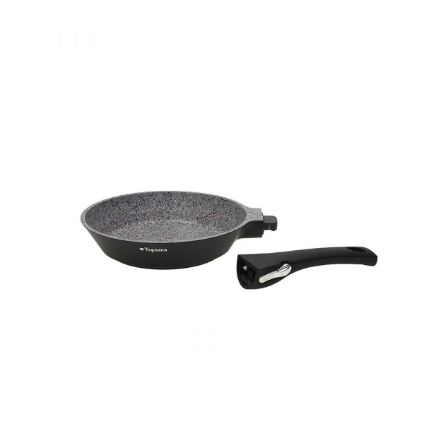 Linea Ambiziosa, corpo in fusione d'alluminio con fondo ad alto spessore e acciaio termoradiante. Interno antiaderente a 4 strati effetto granito, coperchio in vetro temperato e silicone e manici amovibili.