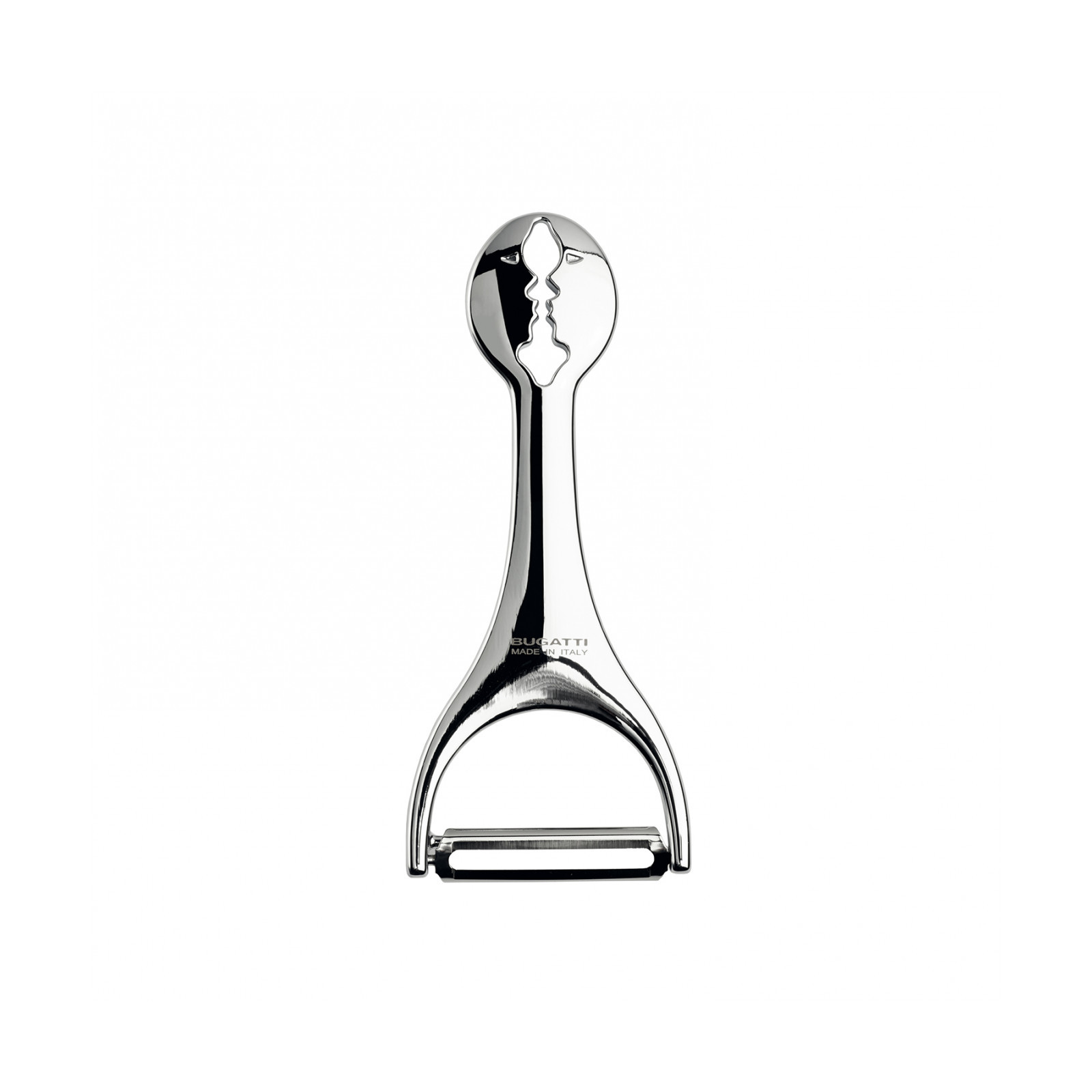 Il pelatutto è uno degli accessori indispensabili in cucina, fondamentale in tantissime preparazioni. Il pelatutto Kiss di Bugatti unisce funzionalità a estetica. Realizzato in zama e acciaio inox, il pelatutto Kiss si distingue per la sua forma iconica tipica della linea Kiss, che raffigura le sagome di due volti in procinto di baciarsi. Il pelatutto Kiss è un accessorio utile e di grande stile per la cucina, ideale anche come regalo o bomboniera.