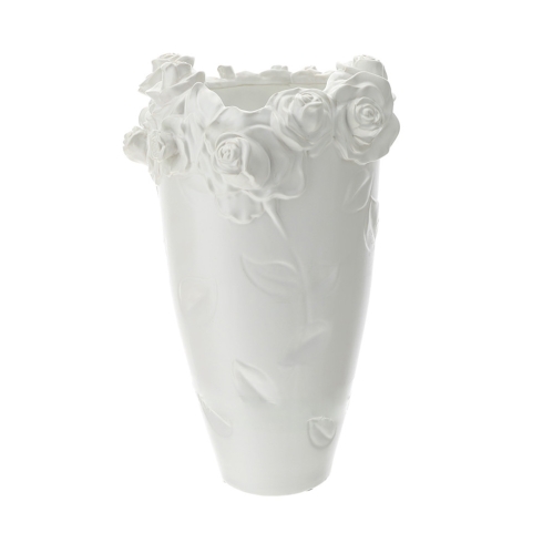 Vaso Scultura Bianco in Grès con Rose BIANCO MATT SCATOLA REGALO Dimensioni: Ø35x51cm