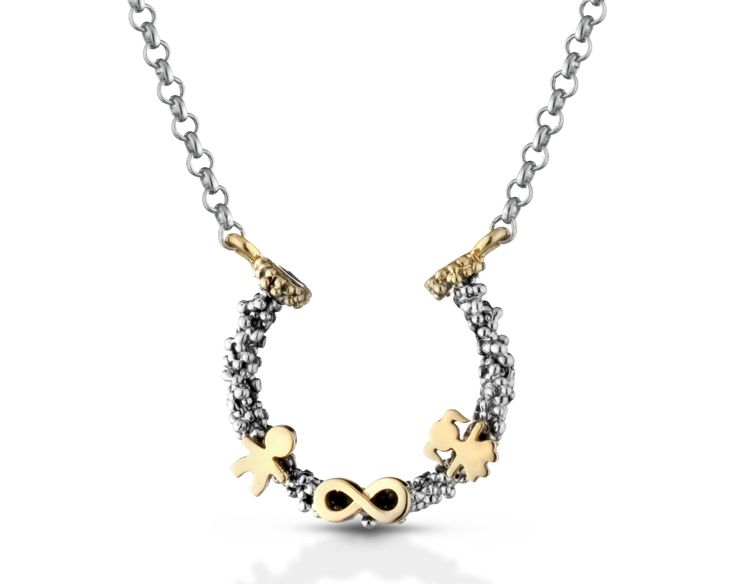 Ciondolo argento 925 con simboli o iniziali in bronzo con catenina, chiusura a moschettone. Dimensione ciondolo 2,4cm circa. Lunghezza catenina da 40 a 44cm circa.