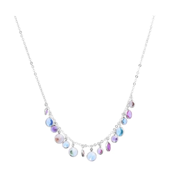 Girocollo Jordan in argento 925 con placcatura in oro bianco e cristalli naturali multicolor pendenti alternati di diam. cm 0,6 e diam. cm 1.