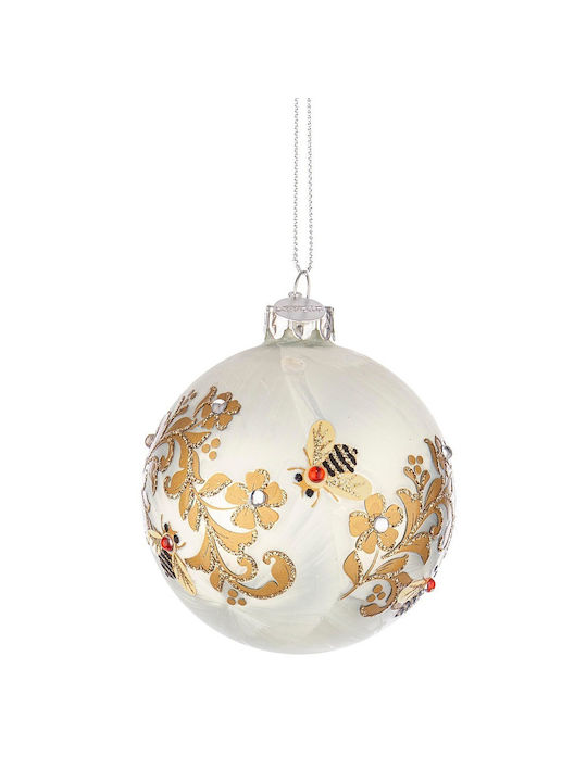 Box 6 sfere in vetro bianche/oro con api