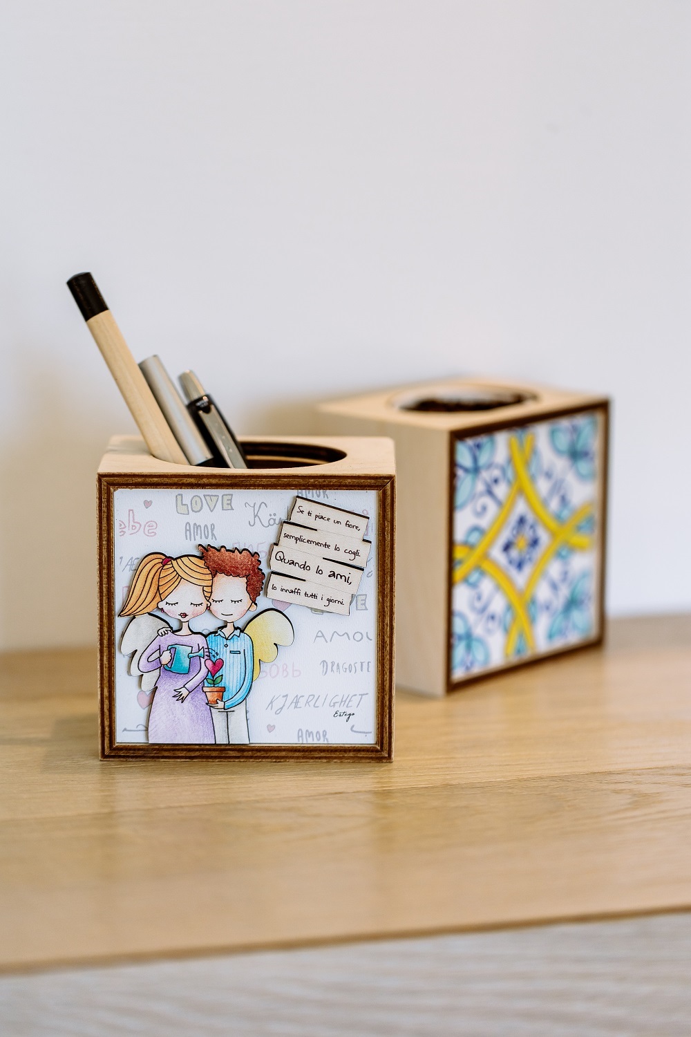 Kodama è un articolo da regalo in legno di betulla contenente un vasetto biodegradabile con semi di fiori o piante aromatiche pronti per eseere innaffiati ed aiutati a crescere. Il vasetto rettangolare può essere riutilizzato anche come portapenne.