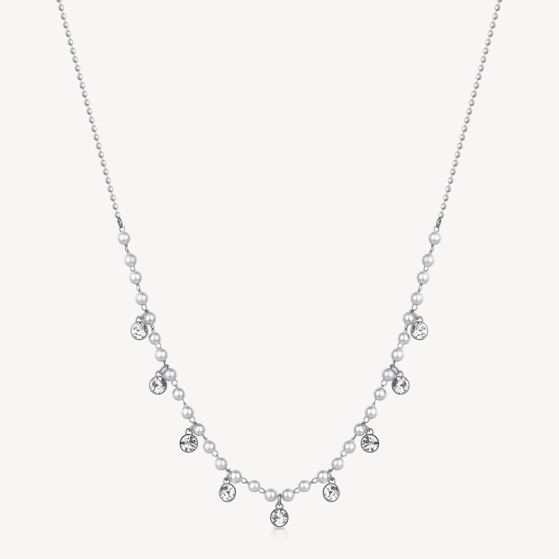 Collana girocollo in acciaio 316L, con cristalli crystal e perle di conchiglia.