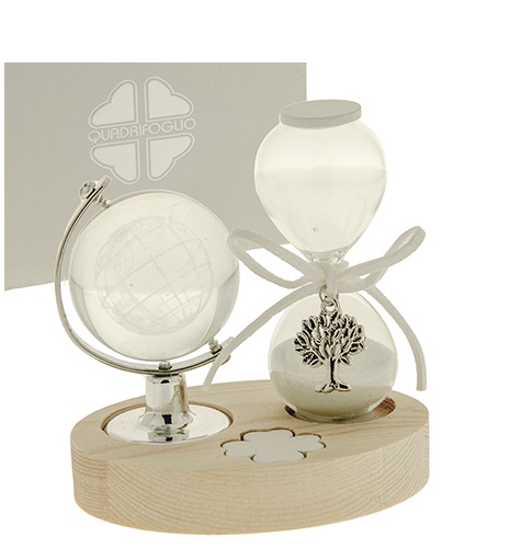 Clessidra con mappamondo e ciondolo albero della vita. Prodotto ideale per Bomboniere originali. Bomboniere Solidali Quadrifoglio Associazione ABIO.