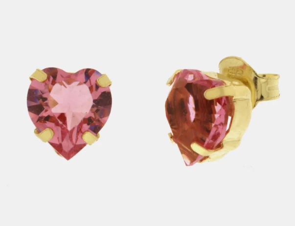 Orecchini in Argento 925 a lobo con punto luce rosa a forma di cuore