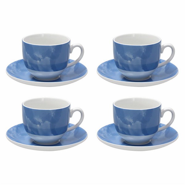 Confezione 4 tazza . cappuccino con piatto Colorplay blu