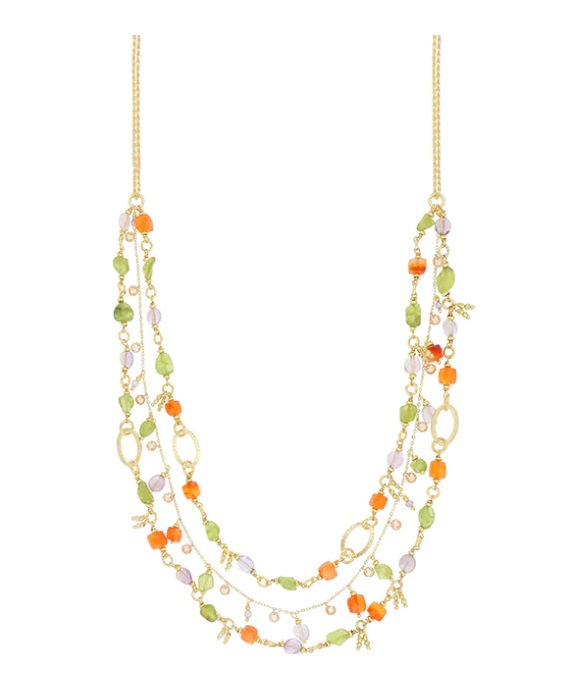 La collana con pietre Chiara è realizzata in argento 925 °/°° con peridotto, ametista, corniola, spinello e zirconi.