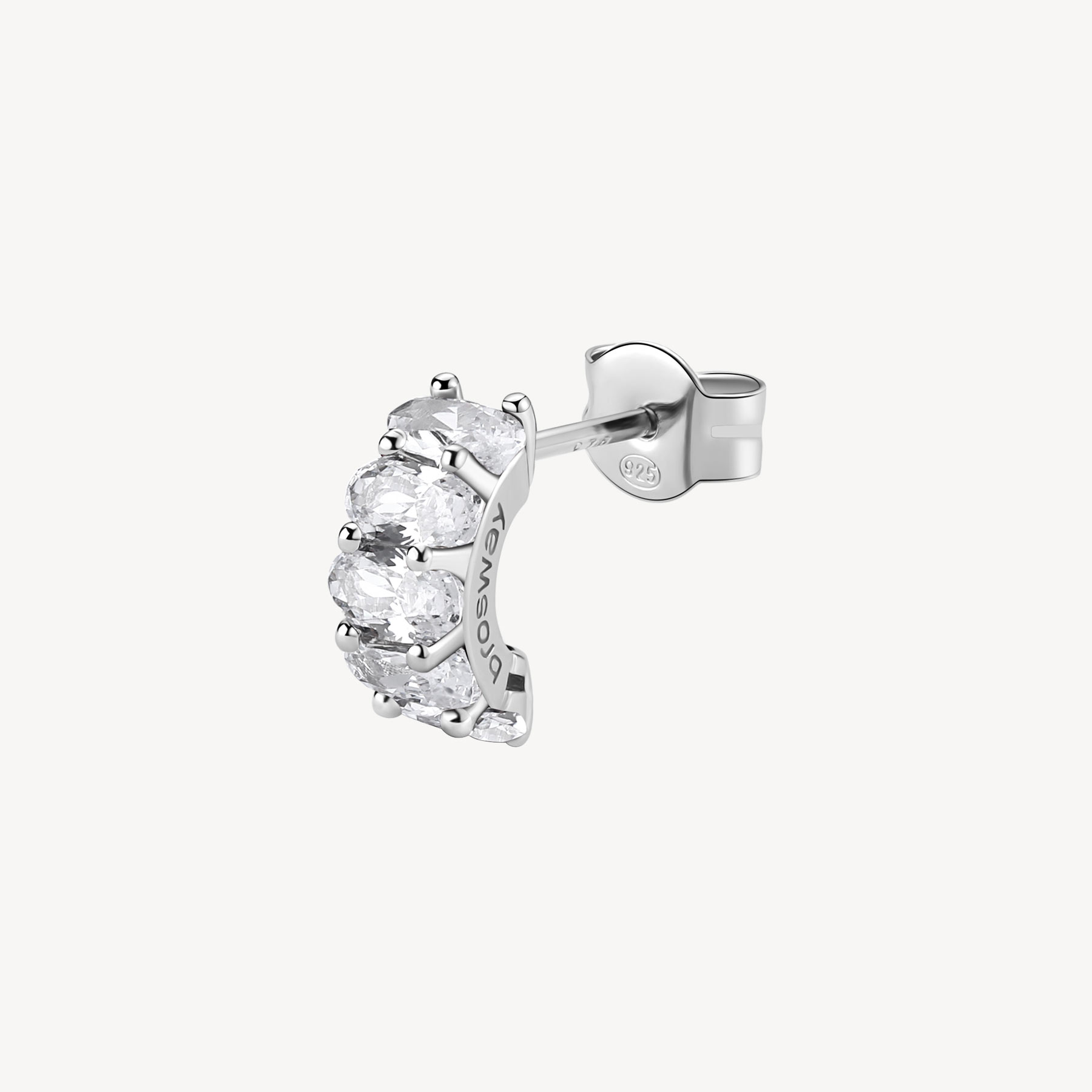 Orecchino singolo a U in argento rodiato 925‰ con cubic zirconia.