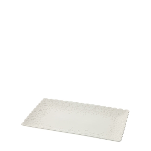 VASSOIO RETTANGOLARE IN PORCELLANA ROMANCE BIANCO RILIEVO ROSELLINE SCATOLA REGALO